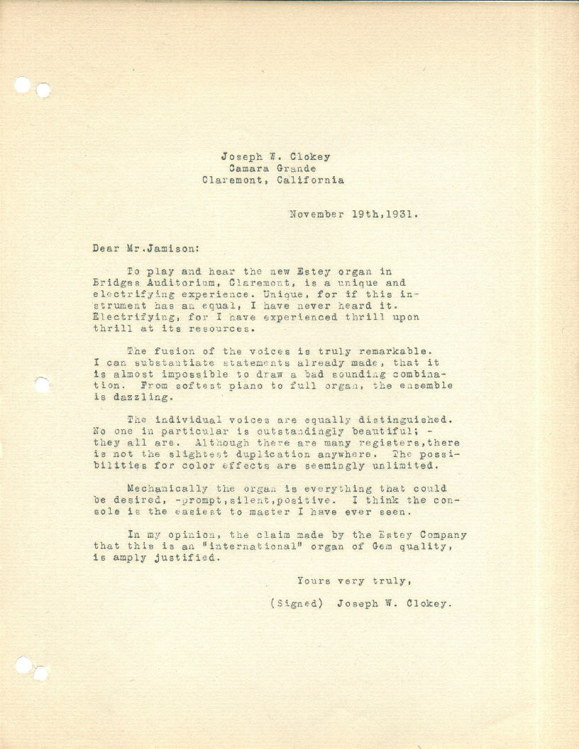 organist, and James B. Jamison of the Estey company drew
